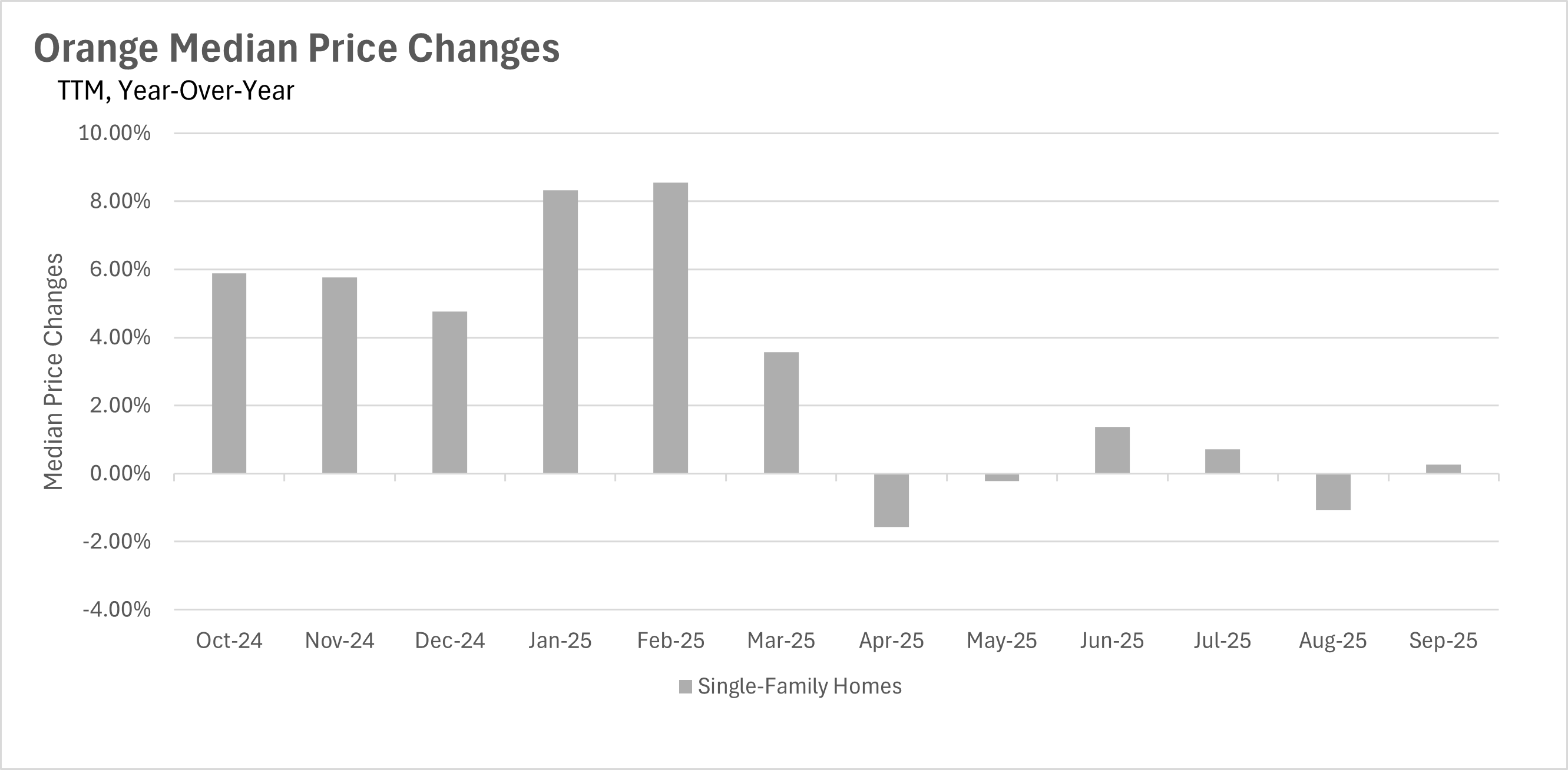 Orange County's housing market is showing signs of reaching a pricing equilibrium after months of volatility. September 2025 saw the median single-family home selling for $1,401,250, representing a minimal 0.27% increase compared to September 2024's $1,397,450. This near-flat year-over-year comparison represents a significant departure from the double-digit growth rates seen throughout much of 2024. The median price also demonstrated modest month-over-month growth of 1.17% from August's $1,385,000, suggesting that while downward pressure persists, prices may be stabilizing around current levels. This equilibrium point appears to reflect where buyer demand and seller expectations finally meet after months of adjustment to the new market realities.