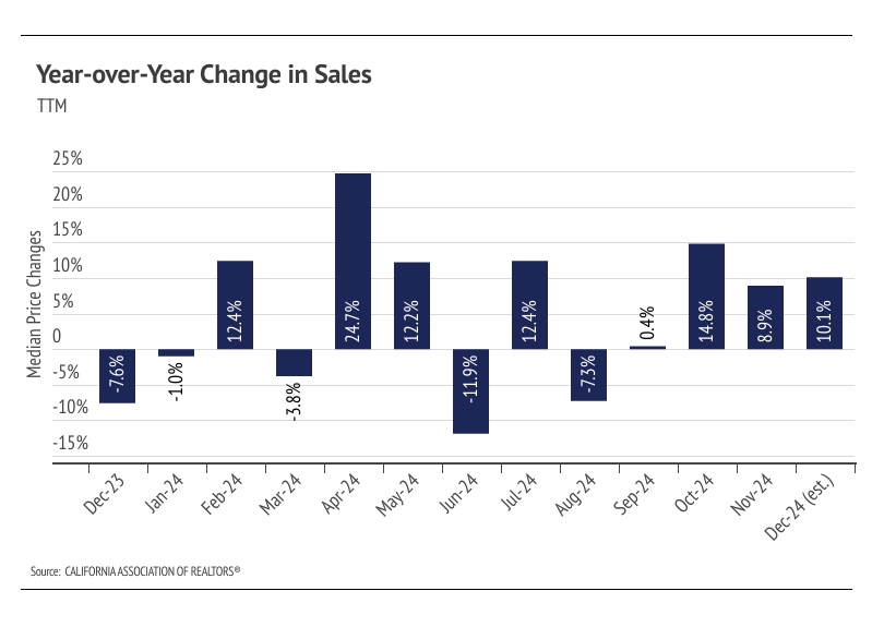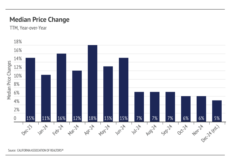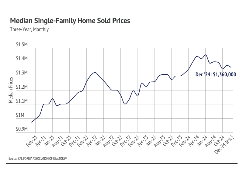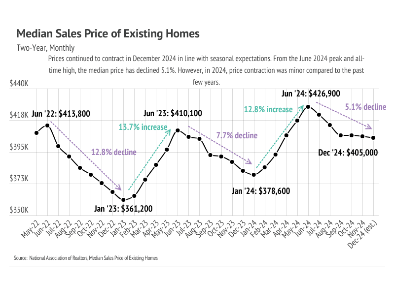 The median single-family home price declined in December, which is normal this time of year. We expect price contractions in January 2025 before climbing higher from February to June.