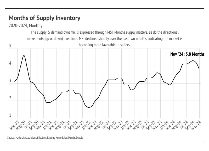 Months of Supply Inventory trended upward in 2024, closing out the year at three months of supply. MSI now indicates the market is more balanced between buyers and sellers.
