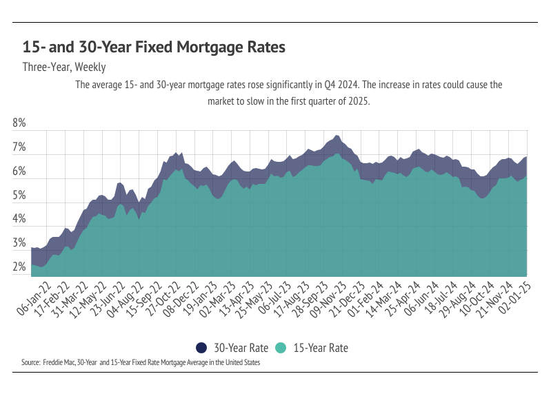 Home prices declined modestly in Q4 2024, showing atypical price stability in the second half of the year. Because prices didn’t contract significantly in the second half of 2024, they will easily rise to new highs in 2025.