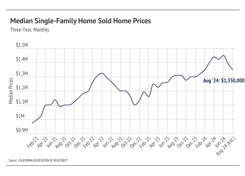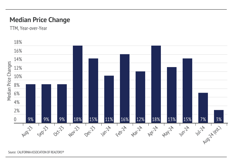 In Orange County, single-family home prices hit a record high in June 2024, reaching $1.45 million. High demand relative to the persistently low inventory has kept prices moving higher even during a time of elevated mortgage rates. High mortgage rates have really only slowed the market rather than decreasing the sticker price of homes. Prices in Southern California generally haven’t experienced larger drops due to higher mortgage rates. August saw the 15th consecutive month of year-over-year price growth for single-family homes. Prices typically peak in the summer months, and we don’t expect new all-time highs this year. However, we do expect some minor price contraction in the coming months. Additionally, single-family home inventory is low enough that it will create price support as supply declines in the second half of the year.